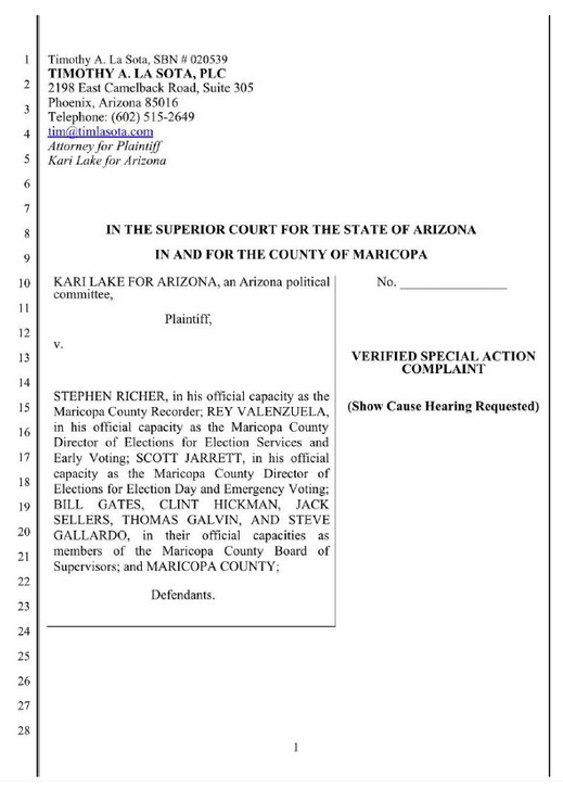 ? Kari Lake has filed a lawsuit against Maricopa County election officials