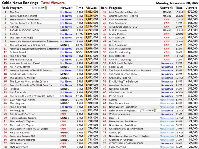 Savage's Fake News CNN only has one show in the top 30 for news broadcasts. Good lord. I knew it was bad, but didn’t know it was this bad.
