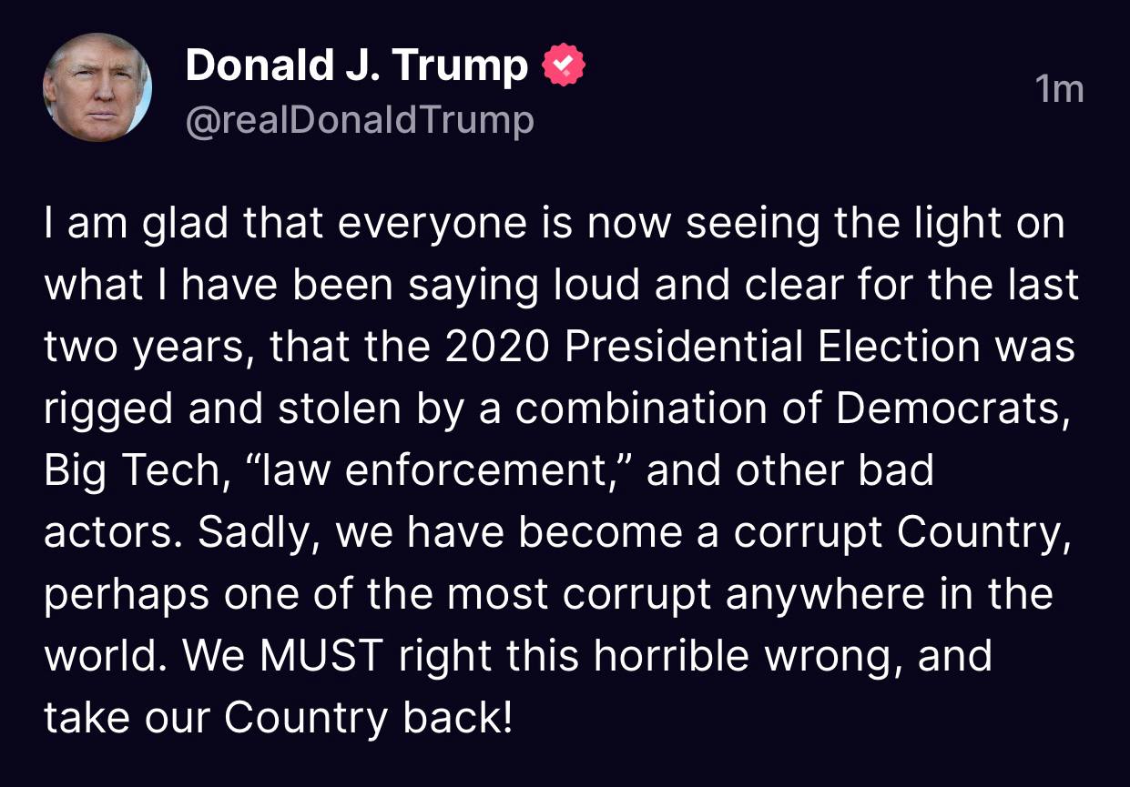 Maybe Elon will get the SCOTUS to overturn the 2020 Election results and declare Trump the winner even two years later!!! lol
