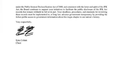 Recent letter from Ezra Cohen ????