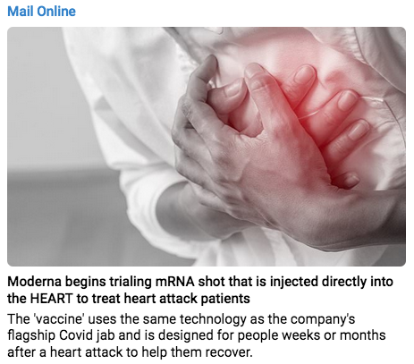 In a news story that echoes scenes from the movie Pulp Fiction, Moderna announced that they are developing an mRNA shot designed to be jabbed directly into the heart to treat heart attacks.