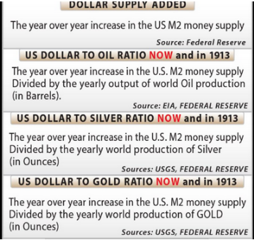 The U.S. dollar to gold, silver and oil ratios are $0.