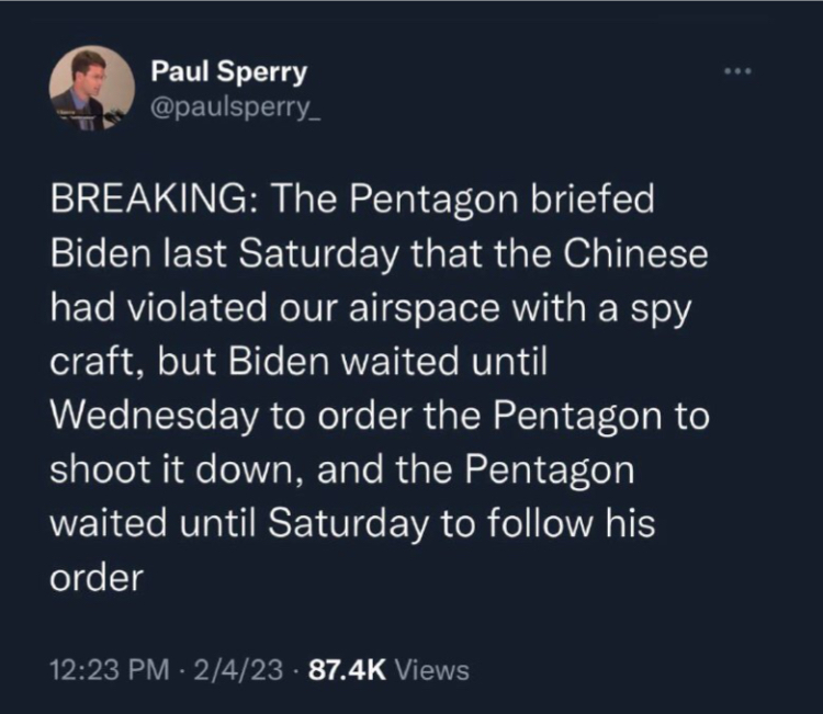 2) That the balloon was shot down, and that it was some kind of optics by the ds to try to make Biden look good!