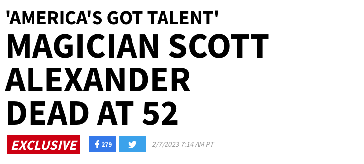 Scott Alexander, a magician best known for his time on "America's Got Talent," has died ... according to his wife.