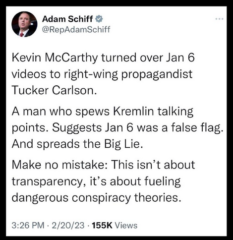Shocking that the likes of the leaking crooked POS Schiff doesn’t want to see the video released .