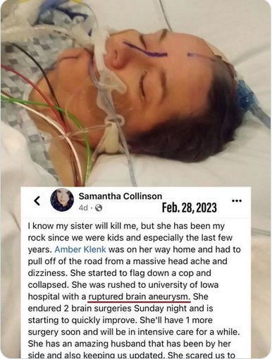 Amy Klenk then suffered from a ruptured brain aneurysm.