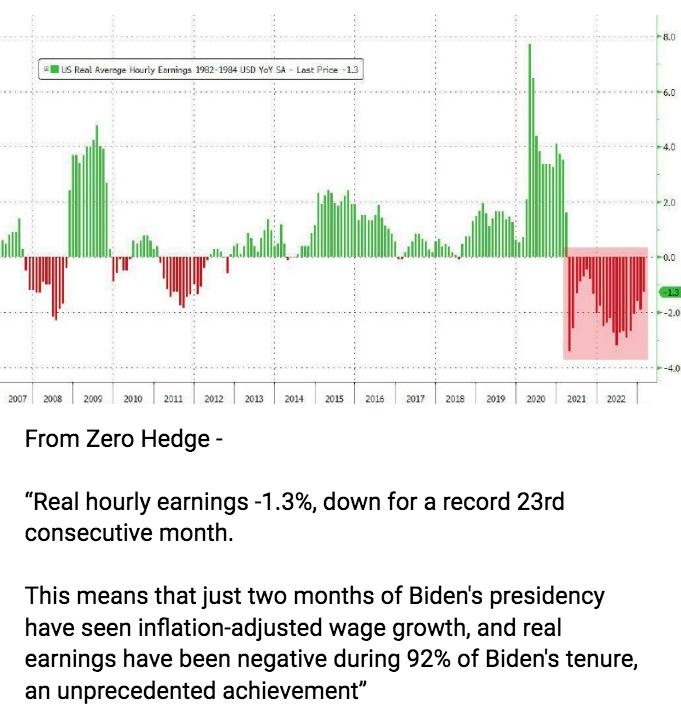 ? Real hourly earnings -1.3%, down for a record 23rd consecutive month