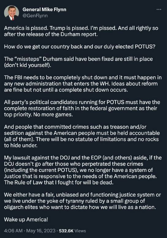 General Flynn's Twitter handle no longer says "Retired"? ? ? ? ?
