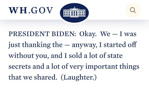 ? BIDEN: "I sold a lot of state secrets and a lot of very important things..."