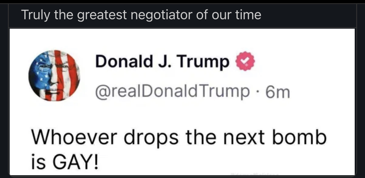 Now Trump has to go save Israel and take out the Ragheads to return Iran back to what it was