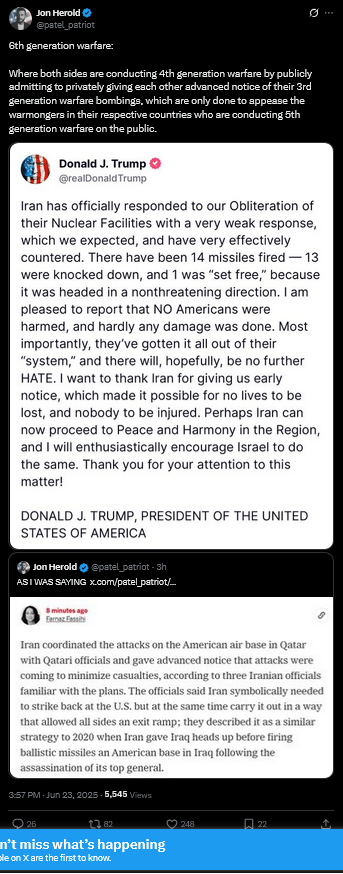 Exactly how it was planned....this happened before, US strikes , Iran is allowed to blow off steamIran launches meaningless and ineffective attack. No U.S. service members have been injured or killed by the Iranian strike.