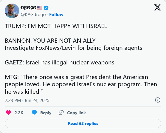 Trump and Bibi walk hand in hand. To not see this at this point is beyond shortsighted. It's simply denial and delusion