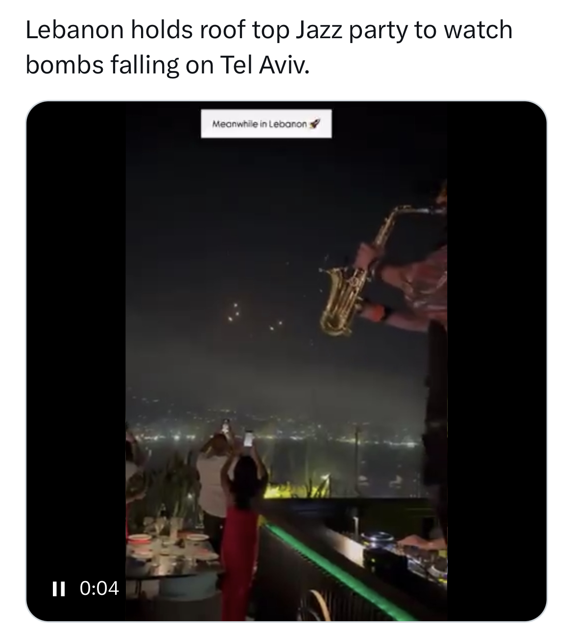 StevieRay said: View attachment 125936 Click to expand... Lebanon can have rooftop parties because Bibi defeated Hezbollah and Syria