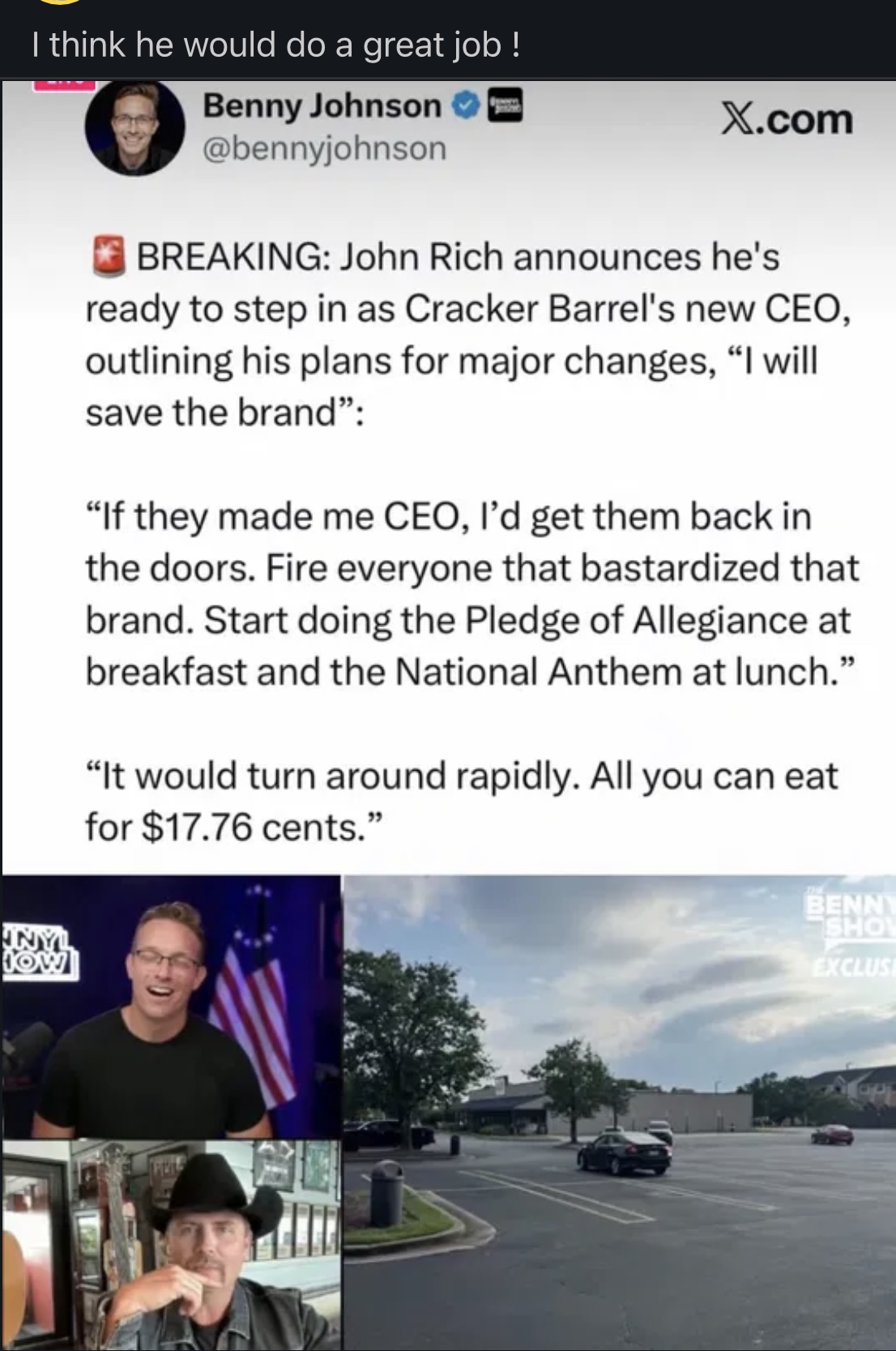 It’s a sad day in America, the fall of a great breakfast. Cracker Barrel goes Woke