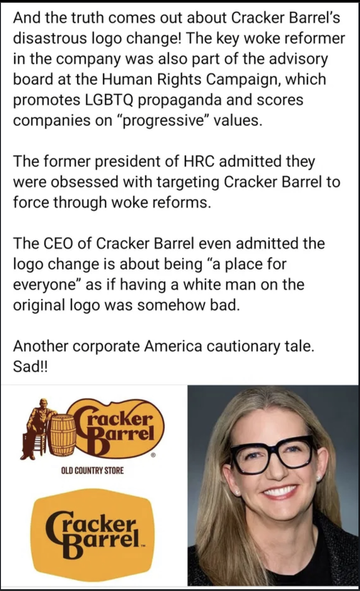 It’s a sad day in America, the fall of a great breakfast. Cracker Barrel goes Woke