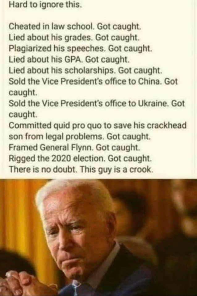 Biden has been caught over and over again about his dishonesty, has a shit bag fucked up family, took bribes from foreign governments, used our money to manipulate wealth for his family or get them out of trouble....