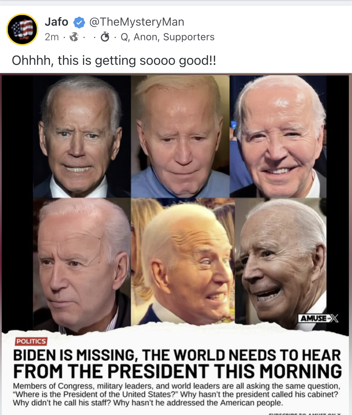 The fact that America's "President" cannot announce this on live television is embarrassing.