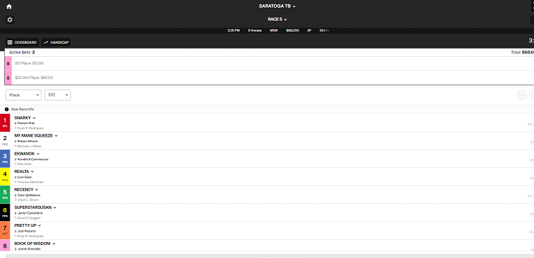 Niko got his flight out of Newark cancelled (I think it was a connecting flight)n and never made it on Saturday. Bummer. I was looking forward to meeting up. But he did make it on Sunday and texted me that he loved one of Irad's horses late in the day and was stepping in. He won easily at 5-1! Niko is a solid handicapper. I'm sure that bet made the crap he had to go through on Saturday a little easier to take.