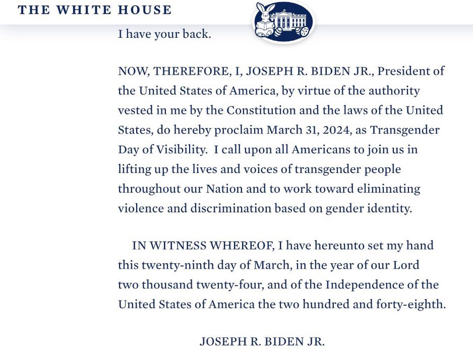 Biden has declared Easter Sunday as Tranny Remembrance Day ... you libs keep pushing the bar on what i consider a creepy soulless immoral fuck to be