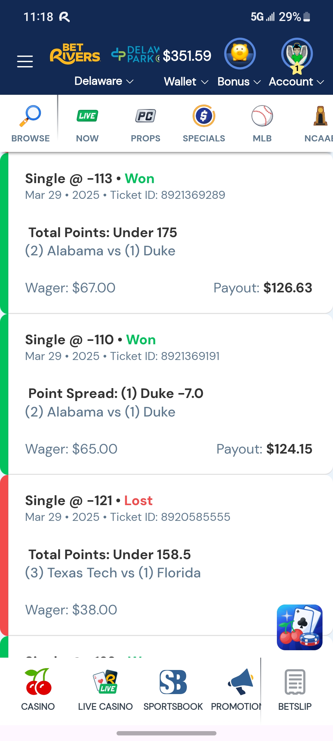 I forgot to play Florida, love MD program, I posted it ,wish I bet it. Alabama just crushed 113-86 Duke just went to -10 I see Duke winning by 21