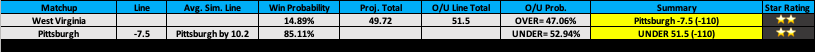 West Virginia @ Pittsburgh- Pittsburgh -7.5, UNDER 51.5