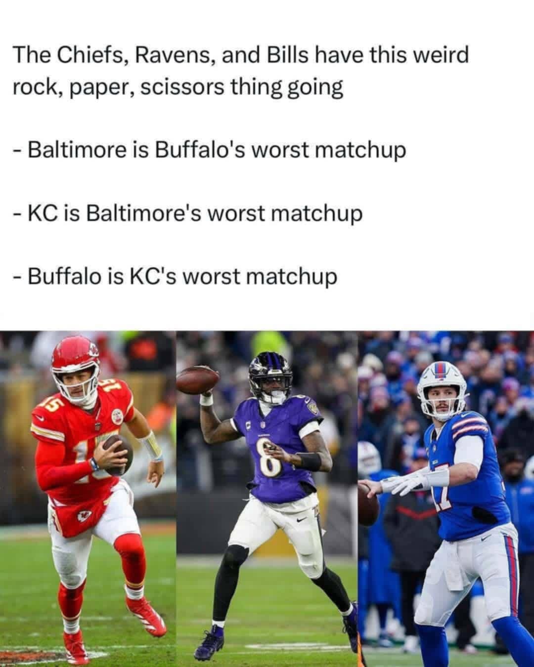 Also, I am VERY confident Lamar will NOT beat Allen AND Mahomes back-to-back. No way. There's no reason to believe he magically reverses his own trends in spectacular fashion. And beating those two studs would indeed be spectacular. Even with King Henry.