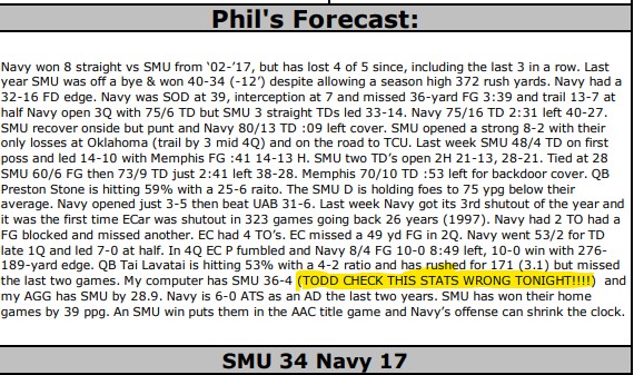 Waiting on some injury updates to complete the matchup analysis of this game. I'll have the write-up to you on Sunday afternoon or Monday. The model predicts just 40.7 total points.