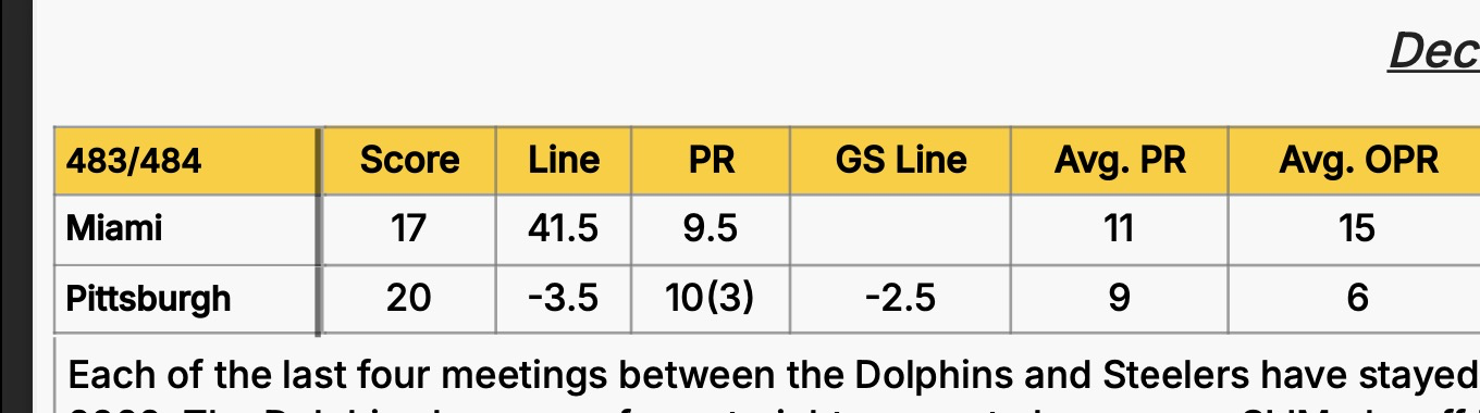 fyi, just more info - current line is -3-120, Goldsheet says line should be pitt -2.5 attached. Mia is 6-7 pitt 7-6. mia looked better recently. i suppose it could be -4; line did open 3.5