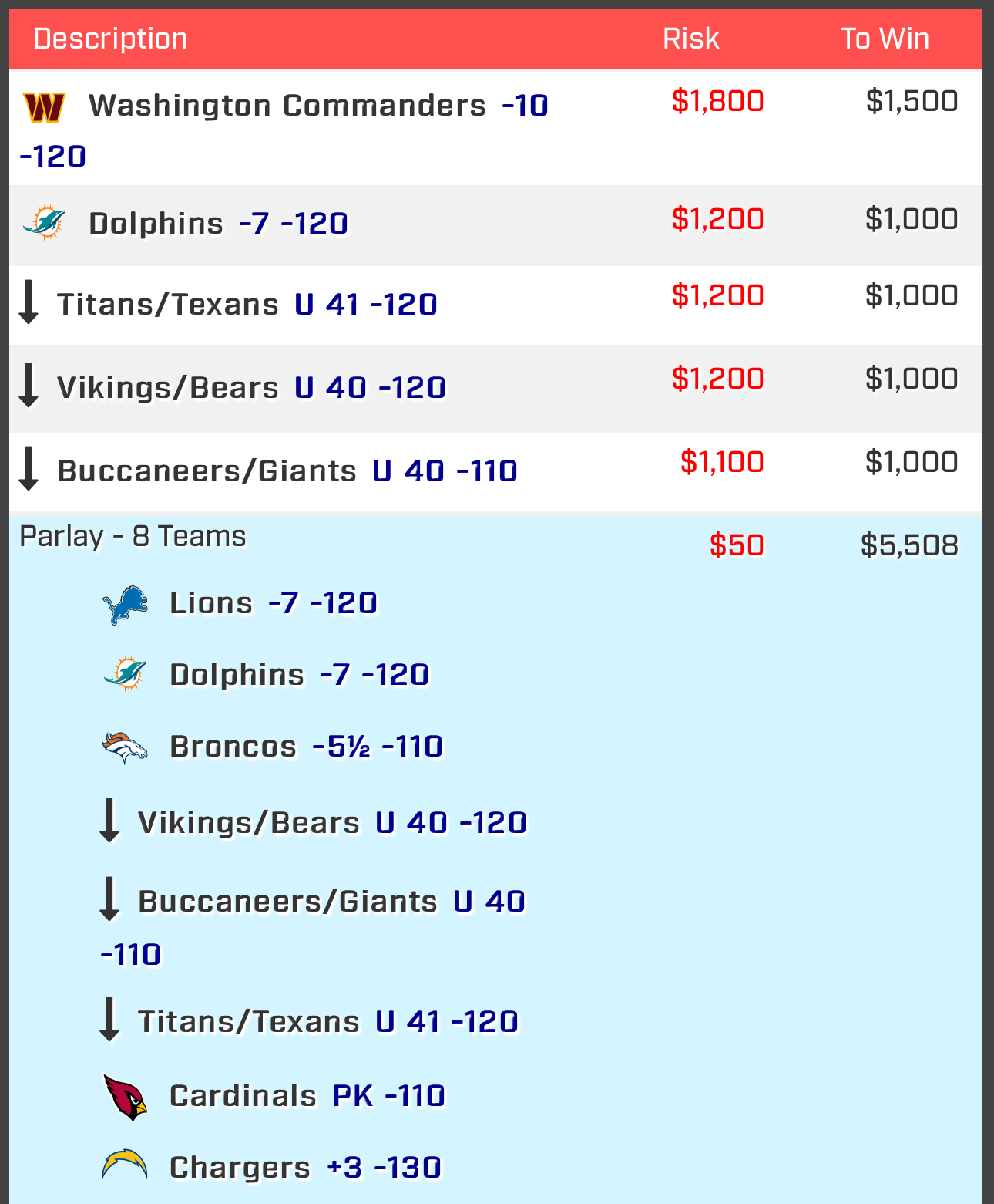 I would probably hedge the second parlay a little bit with five pieces already in, but hey that's just me!!