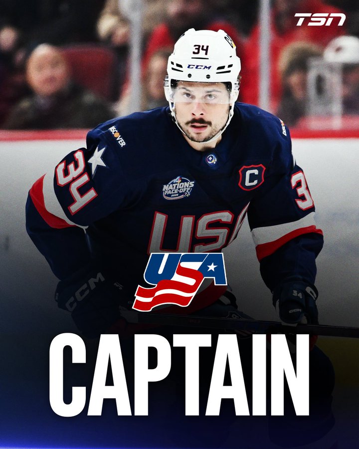 Not sure that's a good thingAuston Matthews has been named captain of team USA, as-well as Charlie Mcavoy and Matthew Tkachuk being named USA’s alternate captains.