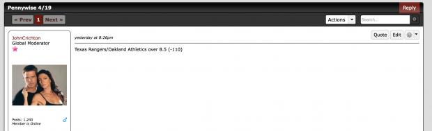 The only rough thing about today was PW total bet ... Which wasn't even close ... But I only bet the Money Line Side ... His totals and run lines are long term losers ... Sort of like guys who join the forum to just bash me because they are a mod on the circle jerk forum ...