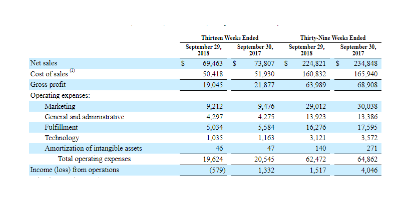 Net sales in the second quarter of 2018 were $77.0 million compared to $80.2 million in the year-ago quarter. The decrease was largely driven by a 9% decrease in e-commerce sales attributable to a decrease in e-commerce traffic and lower in-stock rates resulting from the company's previously disclosed customs issue.