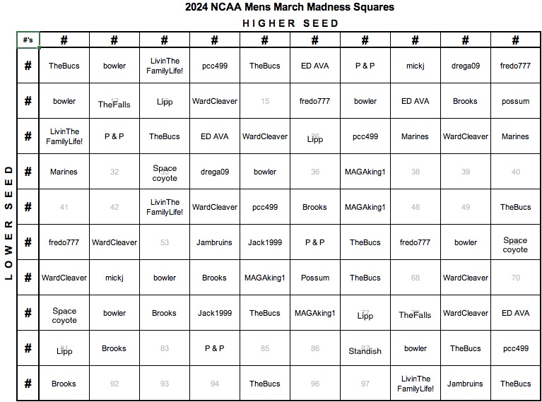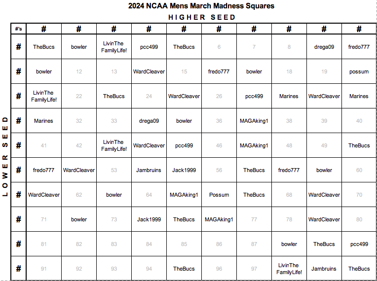 DO NOT MENTION ANYTHING ABOUT A TOURNAMENT, OFFICE POOL, SQUARES OR SQUARE NUMBERS ... ETC.