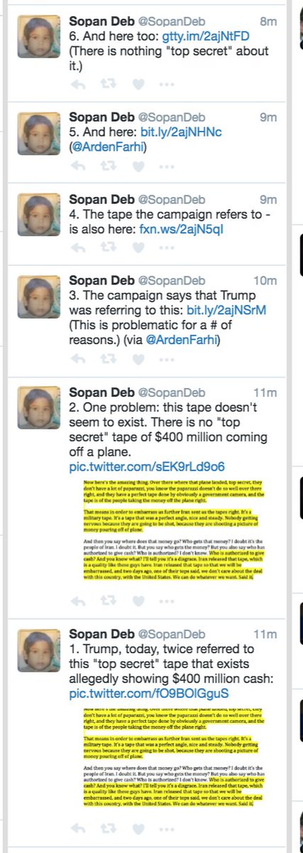 When his campaign was asked to explain how Trump saw a secret Iranian tape of this huge amount of cash being delivered to embarrass us, they replied that it was really b-roll footage from Fox News.