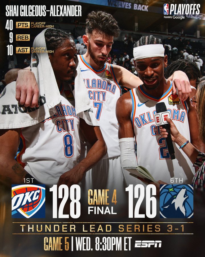 For the second straight game, Oklahoma City appeared very much a No. 1 seed for a reason, seizing control for good in a lopsided third quarter and using their defense and depth — and of course, the freshly minted Kia MVP, Shai Gilgeous-Alexander — to put the Wolves in their place.