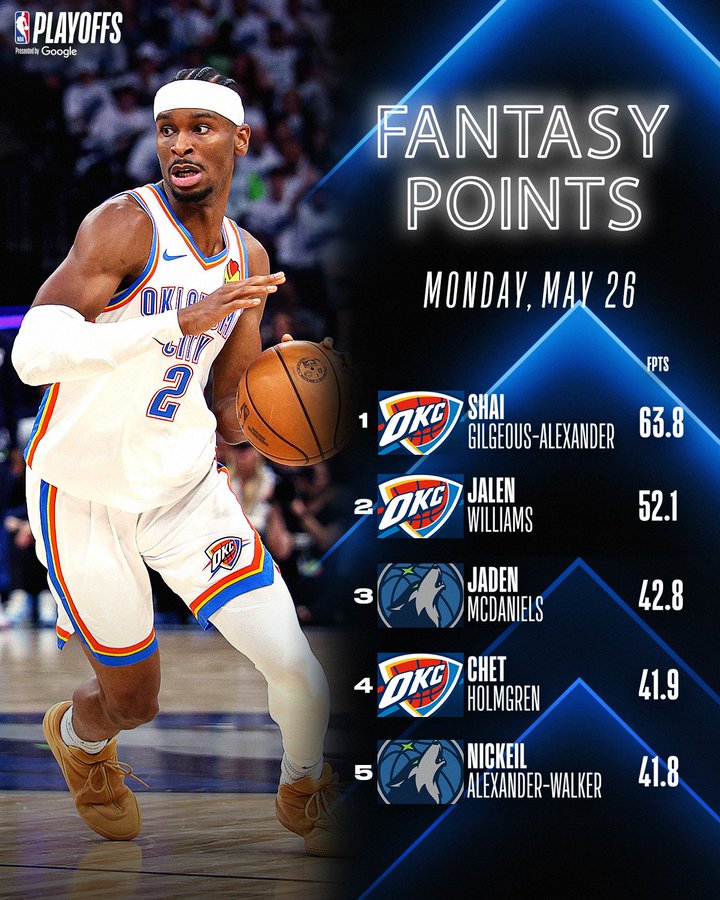 “He was really aggressive,” said Daigneault. “He chose the right spots to get to his spots and pull up, chose the right spots to attack the basket, found good passes. Great performance.”
