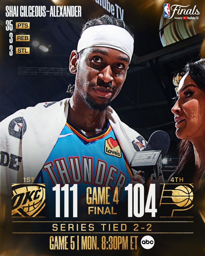 T.J. McConnell to a starting role. McConnell has been brilliant throughout the playoffs and sparked a rally in which Indiana closed an 18-point deficit to two in the second half of Game 5 before Oklahoma City pulled away for good.