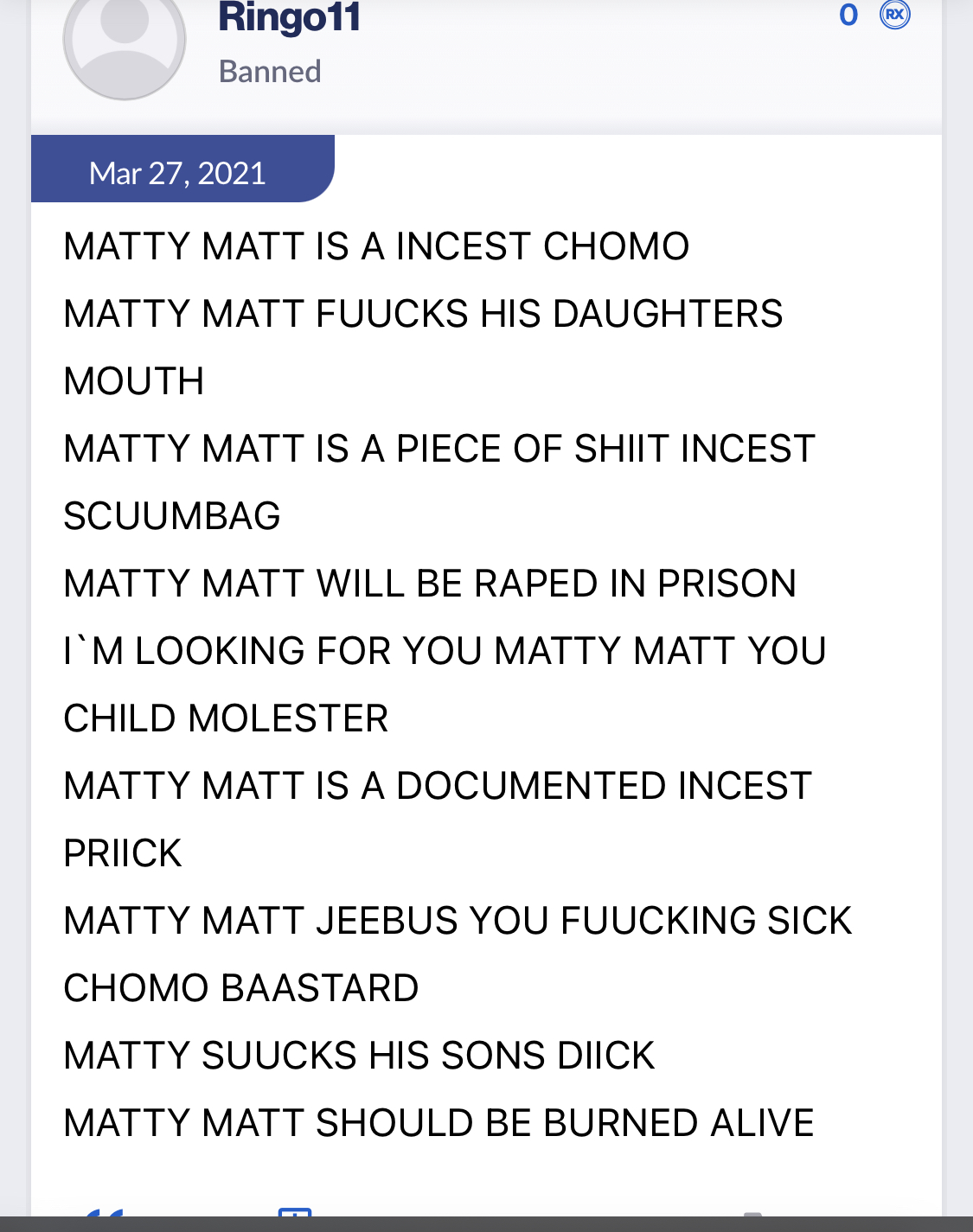 Threatening to kill posters, calling them all kinds of weird shit, using the N-word