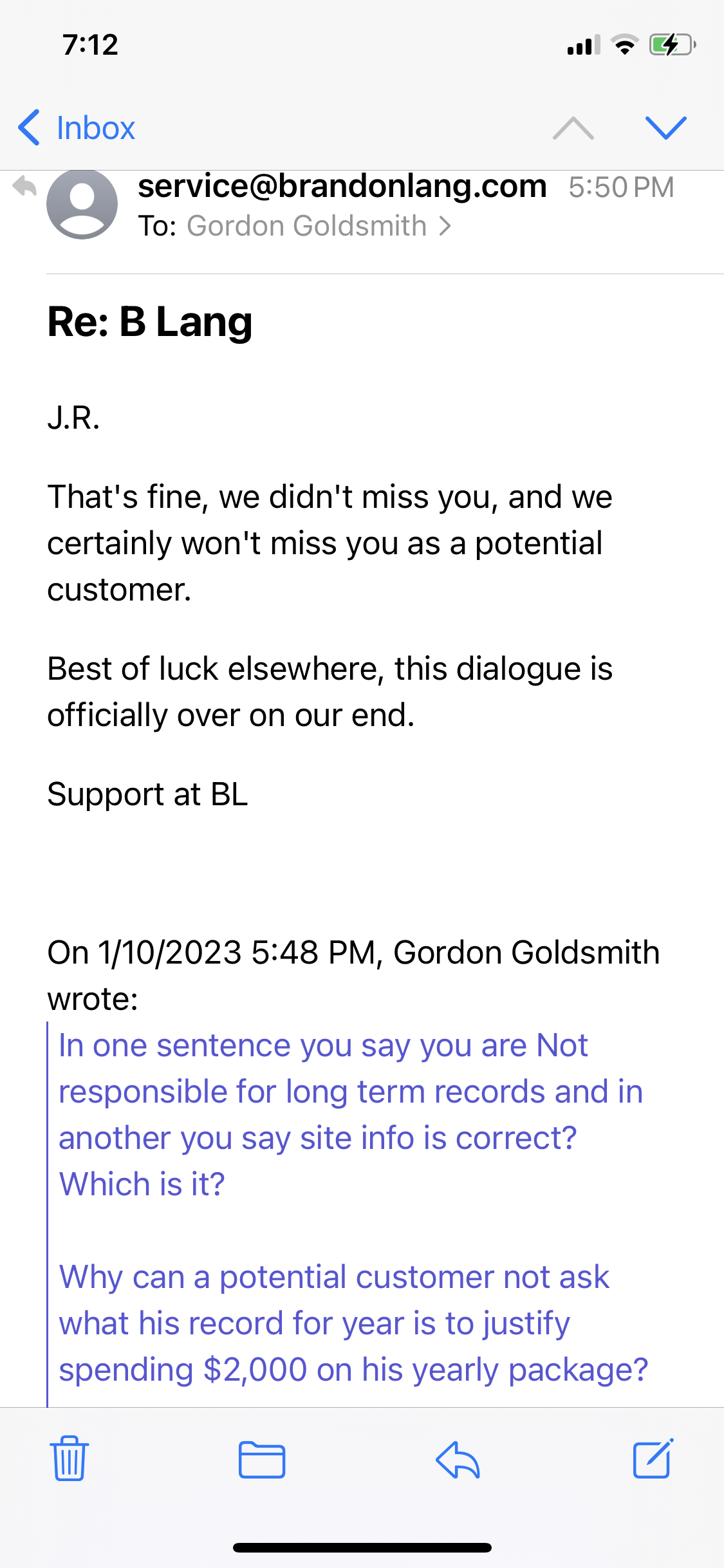 Lang, Budin and DeMarco probably rotate as the customer service rep. They have no staff, just them and their made up handiscammers.