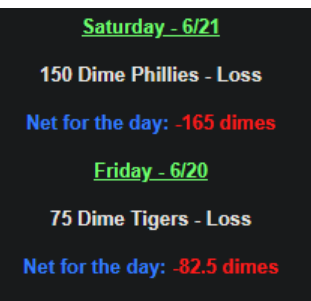 WEEK 22: 6/3 to 6/9, (5W-2L) -13.75 DIMES