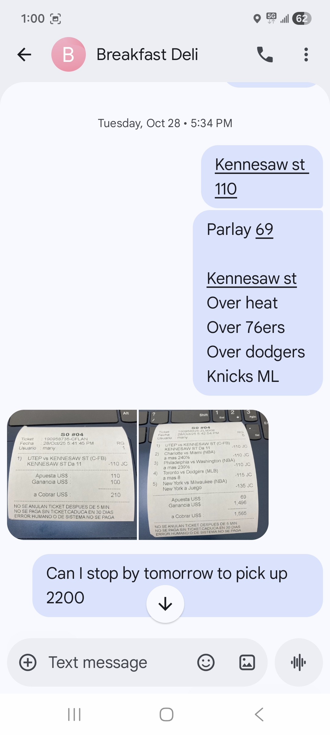 Sunday with the 150 dimer on Niners. Last night 60 dimer on Falcons.
