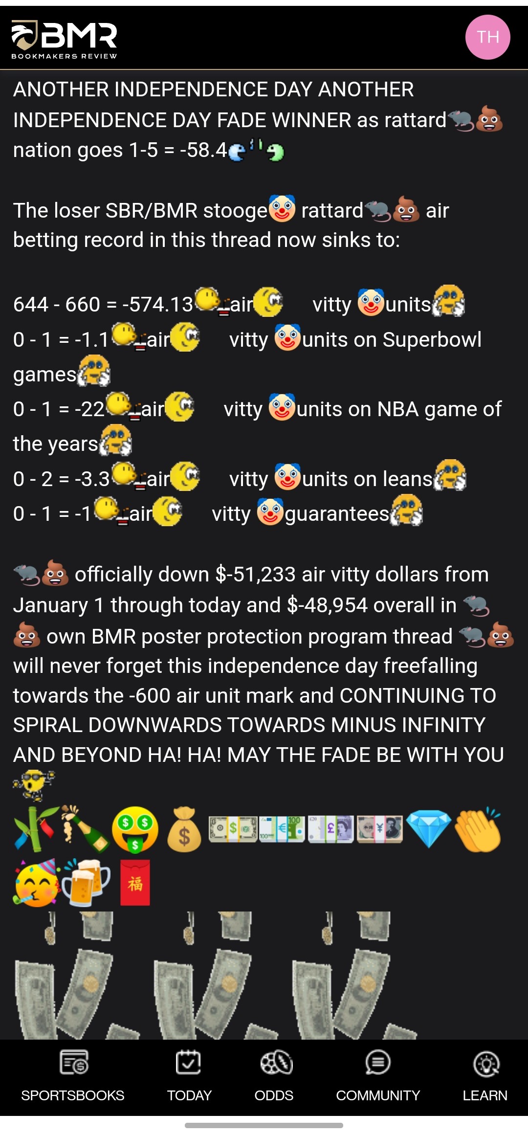 The loser SBR/BMR stooge? p⁵ rattard?? air betting record in this thread now sinks to: