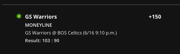 Celtics ML ( 1,660 to win 1,000)