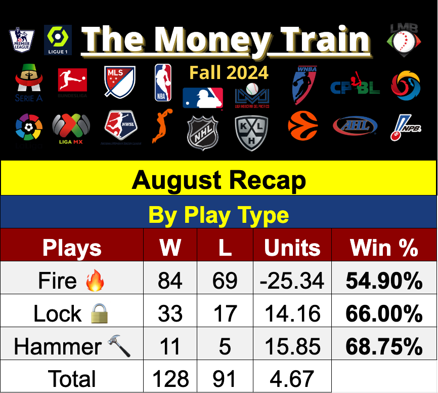 A brief rundown on how the TMT Betting Model performed in August.
