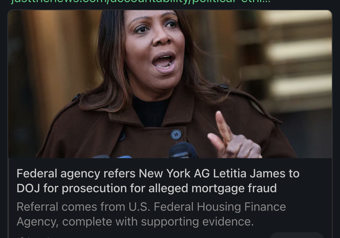 The Attorney General holds a unique position of public trust. James won a $350 million verdict against Trump for misrepresentations in property valuations. The central claim in that case—that Trump misrepresented property values and usage for financial gain—bears a troubling similarity to the questions now surrounding James’s own real estate declarations.