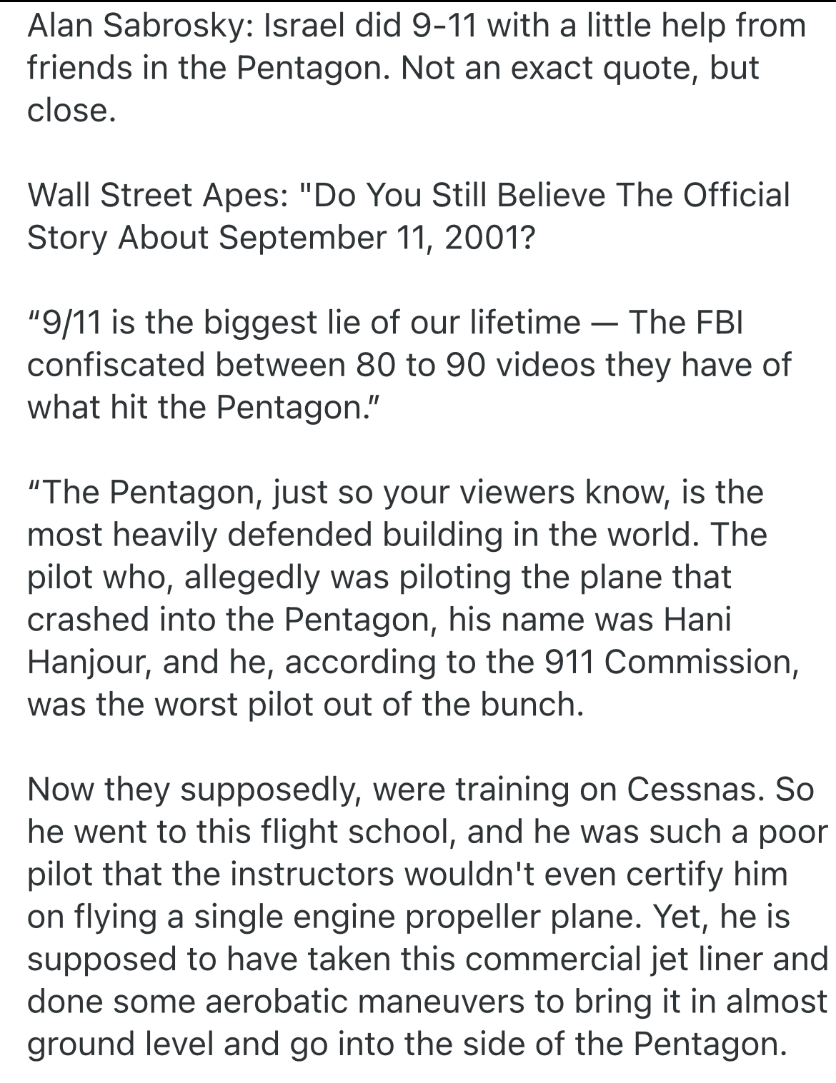 Tucker opening up a can of worms regarding 9/11. He knows the truth but also knows he cant just come out and say it.