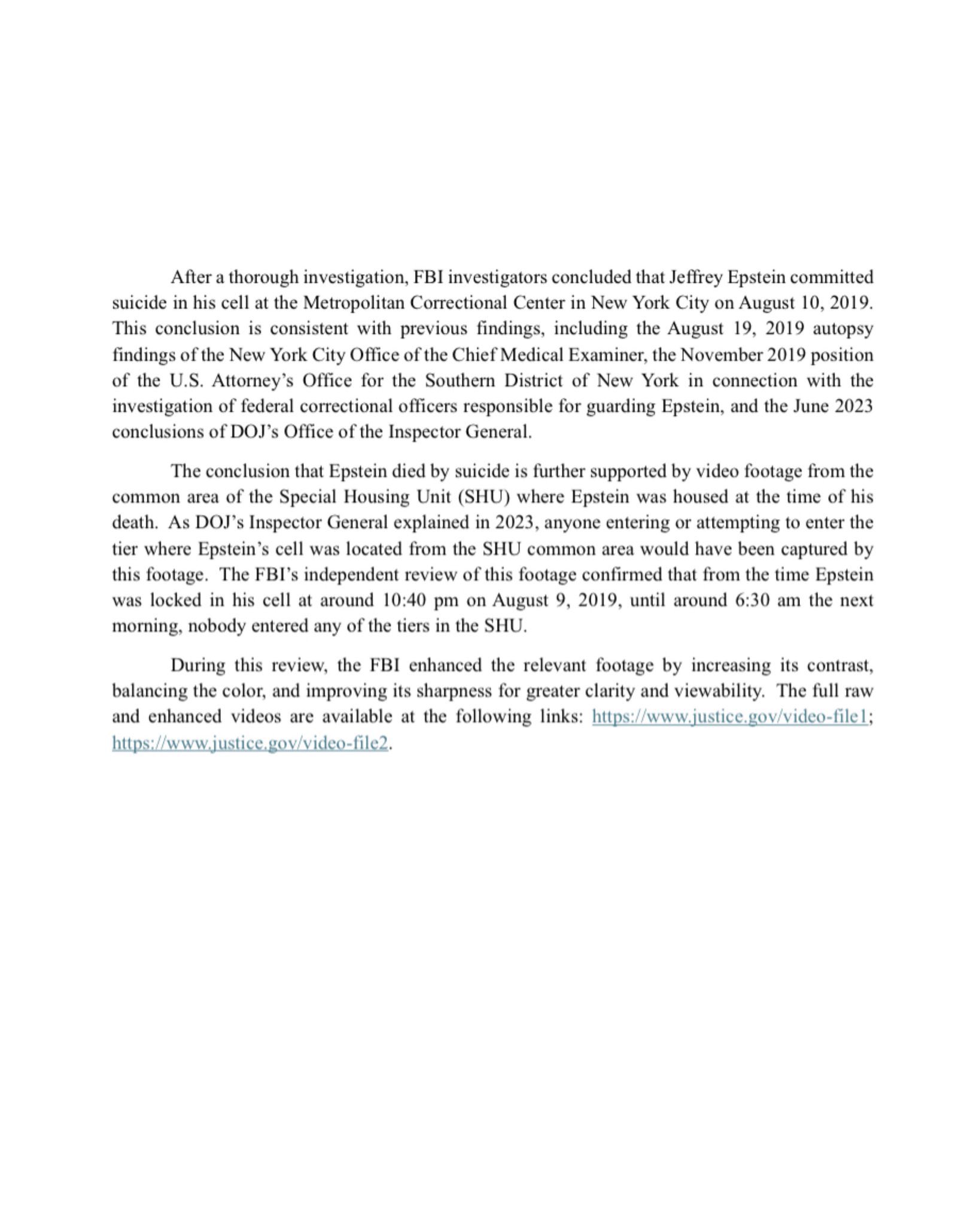 "The looming threat of an FBI probe into Prince Andrew has also been dropped, with a Justice Department (DoJ) memo accompanying the footage saying no new people in the case would be charged."
