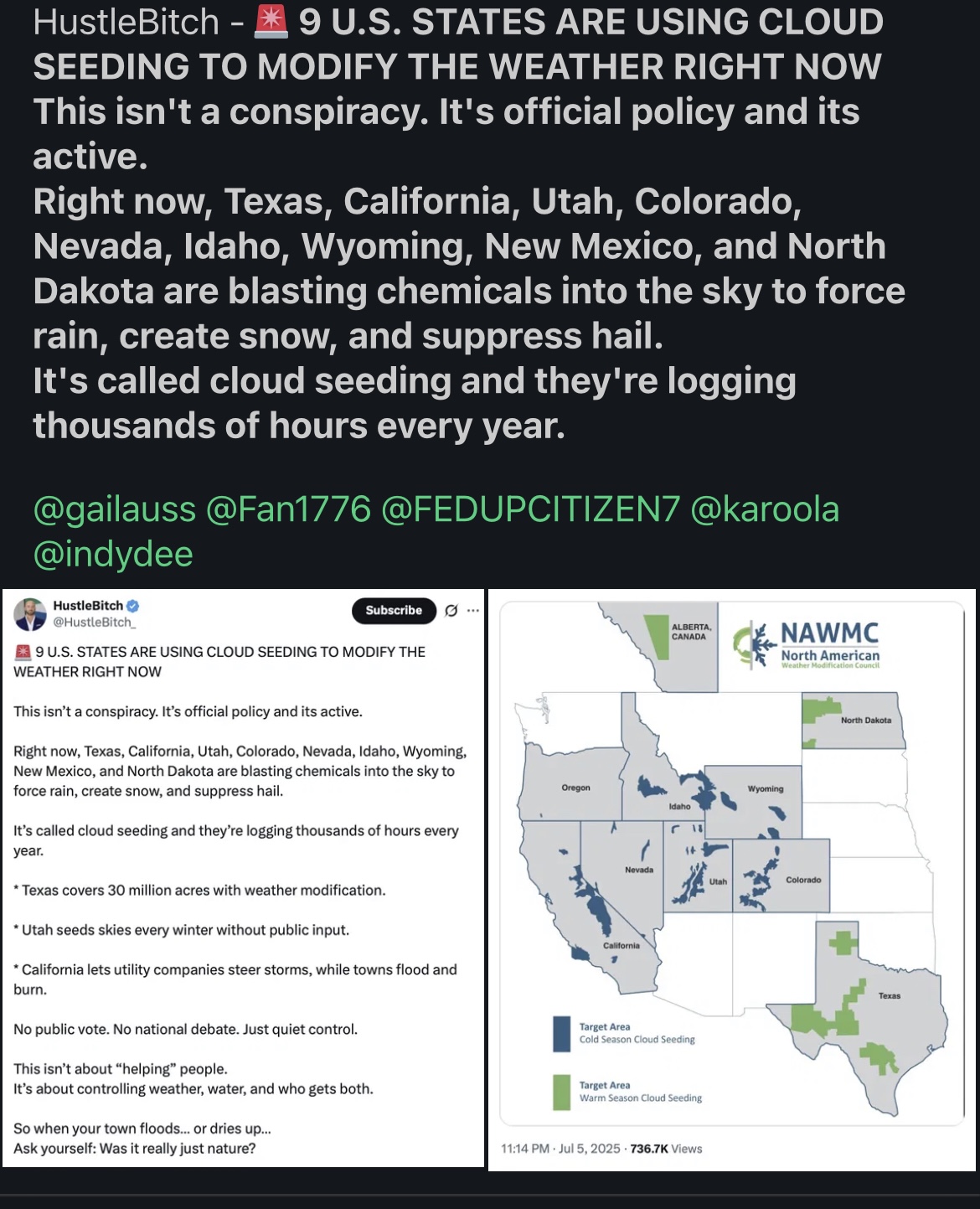 U should really research it. Do u live under a rockyou found some shit on X on cloud seeding...it must be true.