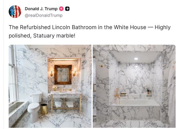 Take this up with Jeffries and Schumer. That’s a beautiful bathroom.. President’s for years, will enjoy this.