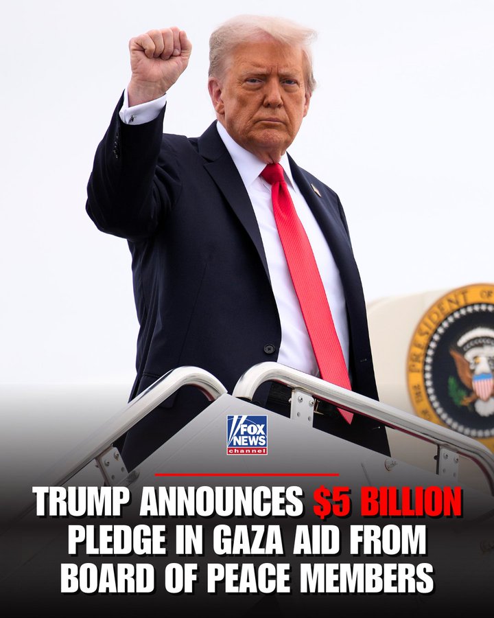 President Trump announced that member nations have pledged over $5 billion and thousands of personnel to support Gaza’s humanitarian, reconstruction and security efforts through his Board of Peace, while calling on Hamas to fully and immediately demilitarize.